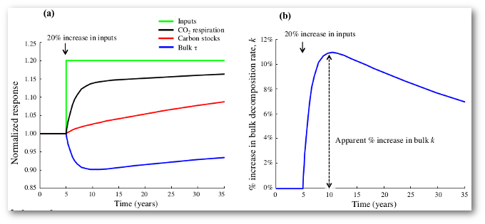 • Our study challenges the analytical framework used to quantify simulated decomposition of soil carbon in response to increased plant inputs (i.e., priming).